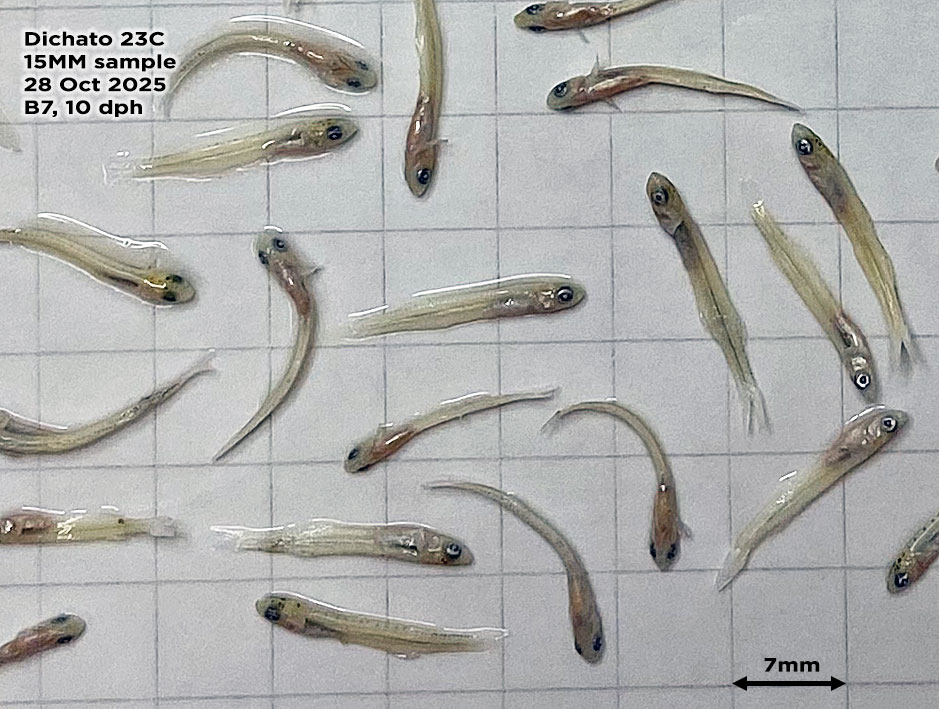 29 October 2025. While the fish from Dichato in the coldest treatment have just begun to hatch, their conspecifics from Iquique and Dichato growing at the warmest temperatures have already more than doubled their size at hatch and are therefore ready for a first length sample. This is always a particularly sweet and rewarding moment, when after all the work to get to this point - it now finally arrived.