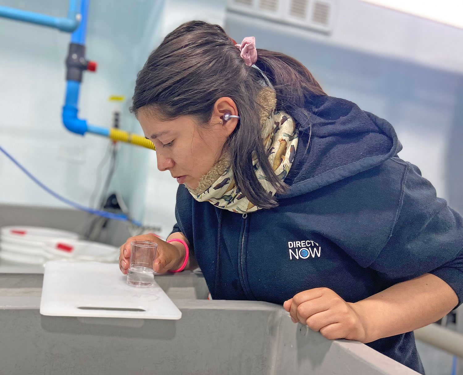 On 20 October, Tamara Cuevas helps distribute newly hatched larvae into replicate rearing containers